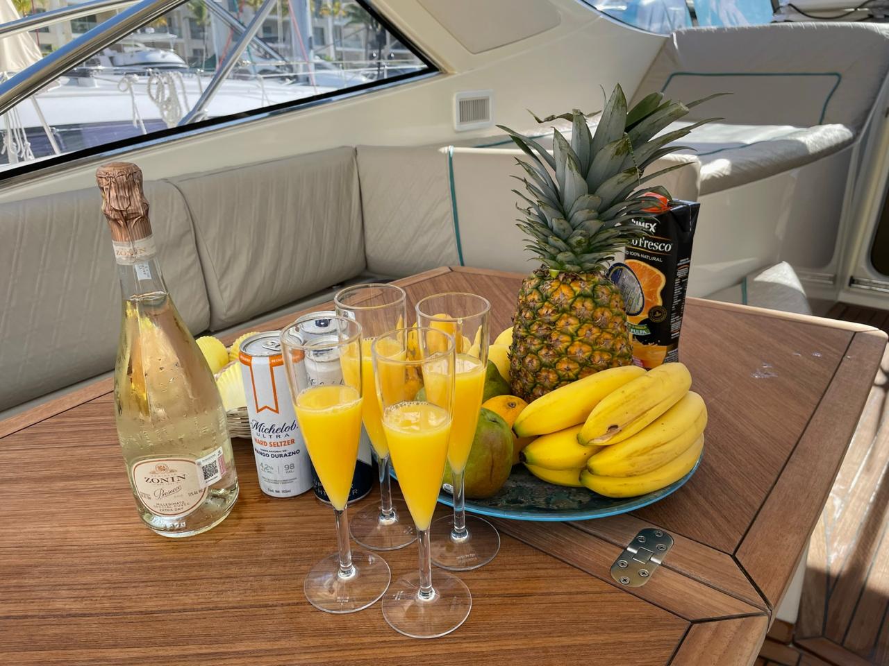 The itinerary begins at the assigned marina, where the boat will navigate the lagoon channels toward the Hotel Zone Bay. Under the supervision of our experienced captain, we will head to the first activity, where our first option will be to anchor in the turquoise white sand beaches between Cancún and Isla Mujeres. This experience lasts 40 minutes.